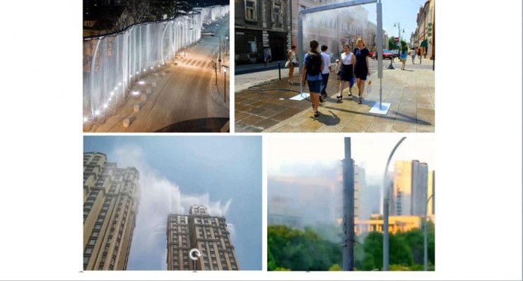 Лейла Рахимжанова также заявила, что можно регулировать ветер и очищать воздушный бассейн с помощью воды. Для этого можно использовать как бассейны, так и воду, падающую сверху, а также водяные экраны. По словам архитектора, подобные водяные завесы использовались на заводе АЗТМ в Алматы в горячем цеху.