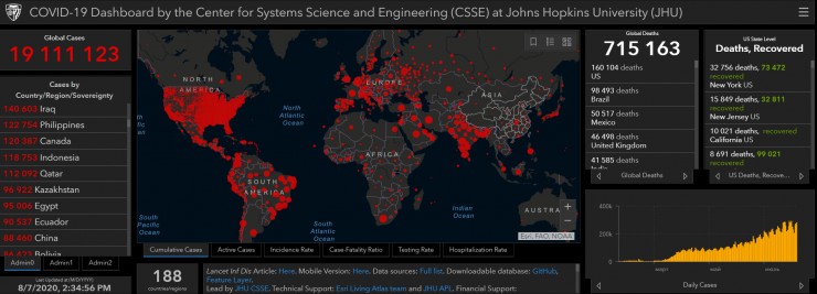 Тем не менее Университет Джонса Хопкинса поднял позиции Казахстана на 26-е место в антирейтинге стран по числу зараженных коронавирусом. Наша страна обогнала Китай, Эквадор и Египет. Всего в мире число заражений превысило 19 миллионов человек.