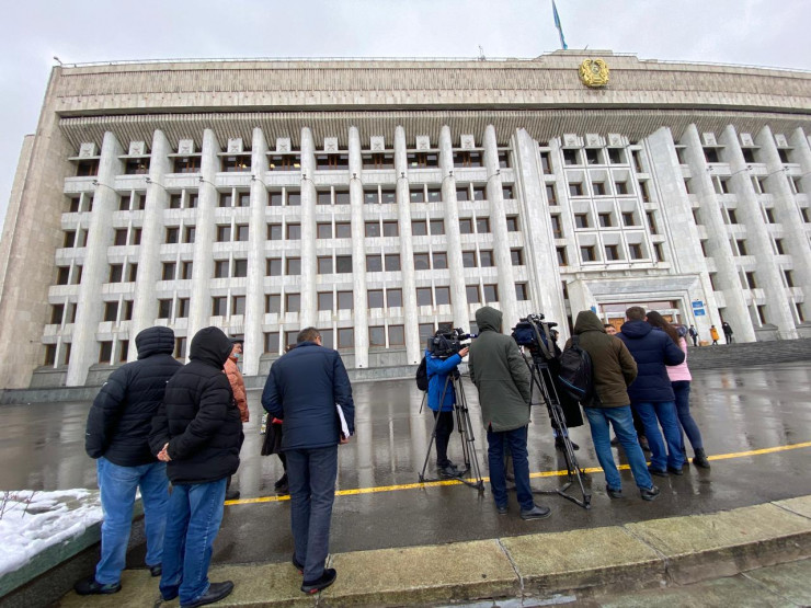 Десятки человек собрались перед зданием акимата Алматы, чтобы потребовать свои заработанные деньги. По их словам, трамплин они возводили без предоплаты со стороны акимата. Работники утверждают, что после завершения строительства деньги так и не были выплачены.