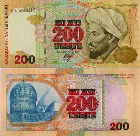 Банкнота номиналом 200 тенге образца 1999 года, выпущена в обращение в 2000 году