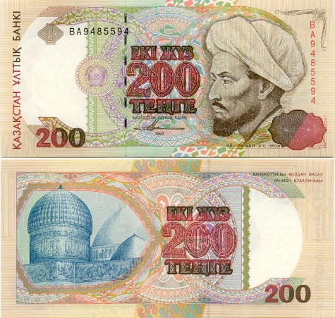 Первая банкнота номиналом 200 тенге образца 1993 года, была выпущена в обращение в 1994 году