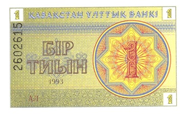 В 1993 году в ходу были и тиыны, 1 тенге был равен 100 монетам. Изначально первые "тиынки" были изготовлены из бумаги.