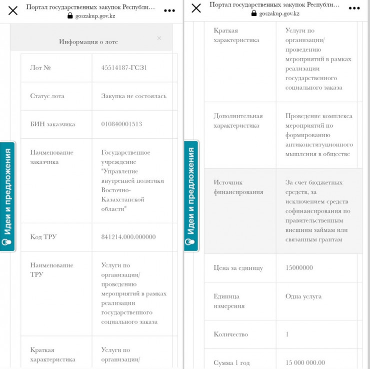 На сайте госзакупок сообщается, что одна услуга по "формированию антиконституционного мышления" оценивается в 15 миллионов тенге, также указано, что деньги будут выделены из бюджетных средств. Согласно той же информации, на участие в тендере подали заявки сразу пять общественных организаций. Правда, пока закупка не состоялась. Скорее всего, в данный момент идет рассмотрение заявок комиссией.