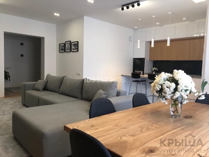 Расположена она в жилом комплексе "Жайлау" на пересечении проспекта Аль-Фараби и улицы Мустафина. Автор объявления сдержанно информирует: в квартире с авторским дизайном две спальни, гостиная, паркинг, а из окна открывается вид на горы.