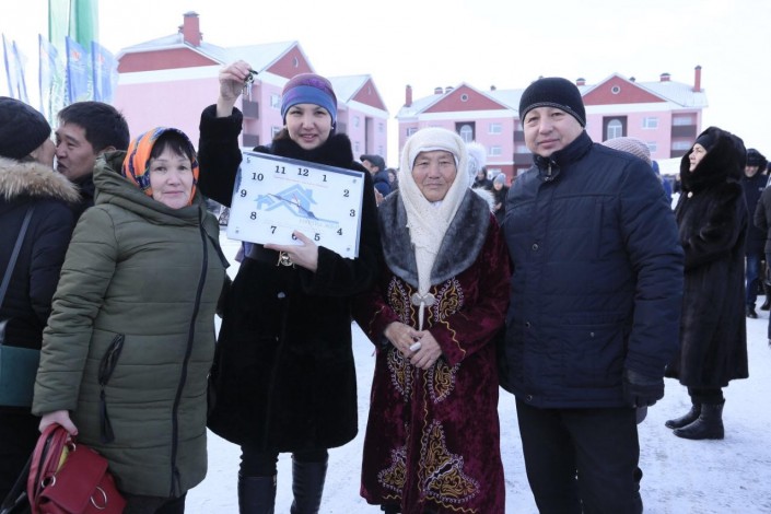 "В своем Послании "Третья модернизация Казахстана: глобальная конкурентоспособность" Глава государства Нурсултан Назарбаев определил новый вектор развития нашей страны. При этом особое внимание уделяется улучшению благосостояния населения. В связи с этим в РК реализуется жилищная программа "Нұрлы жер". В период 2017-2018 годов в "Нур Актобе" будут построены 2 500 квартир, 1 200 из них введем в эксплуатацию уже до конца текущего года. Сегодня мы сдаем первые восемь домов на 273 квартиры. В целом в текущем году планируем ввести не менее 700 тысяч квадратных метров жилья", - сказал Бердыбек Сапарбаев на церемонии вручения ключей.