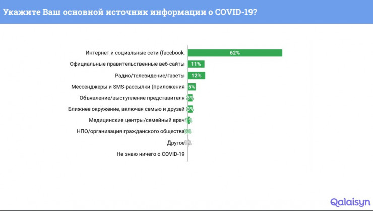Большая часть респондентов (62 процента) также выделила Интернет и соцсети в качестве основного источника информации о COVID-19.