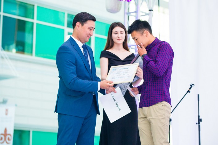 Айдын Рахимбаев объявил специальную премию для ученицы, которая стала лучшей сразу в трех олимпиадах - по физике, математике и английскому языку - Малике Вахасовой. Он вручил ей грант в один из лучших мировых технических вузов.