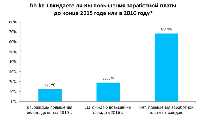 Отвечая на вопросы по поводу дальнейших прогнозов по зарплате, 12,2 процента респондентов отметили, что ожидают повышения заработной платы до конца года, еще 19,3 процента ожидают повышения в 2016 году, остальные 68,4 процента опрошенных отметили, что повышения оклада не ждут совсем.
