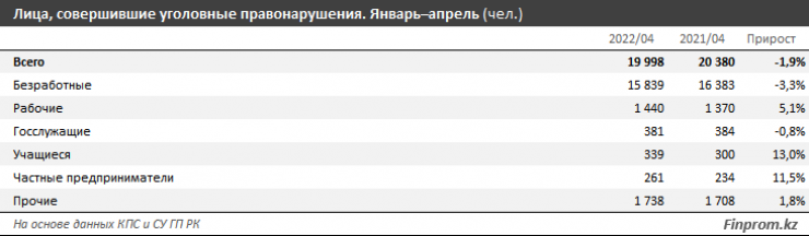 За 4 месяца правонарушения в Казахстане совершили почти 20 тысяч человек. По данным исследования аналитиков Finprom.kz, четверо из пяти преступников - безработные, передает корреспондент Tengrinews.kz.