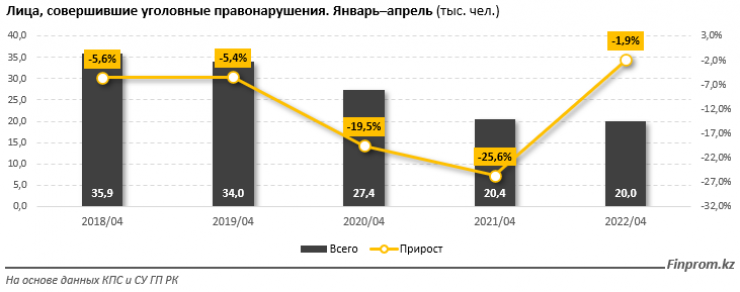 Для сравнения, в аналогичном периоде 2020 года на уголовных правонарушениях попались 20,4 тысячи человек, минус 25,6 процента за год.