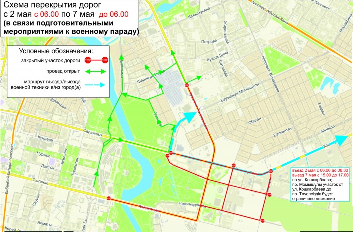 5 мая на дорогах Астаны перекроют движение с 9 утра