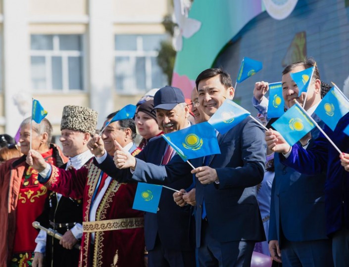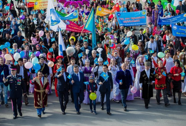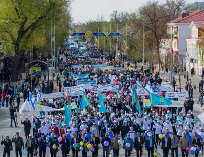 С лозунгами, транспарантами, флажками и шарами десятки колонн проследовали по проспекту, демонстрируя единство, радостное настроение, сплоченность народов, проживающих на земле Приуралья. Вместе с тысячами уральцев в праздничном шествии приняли участие аким области Алтай Кульгинов и аким Уральска Мурат Мукаев.