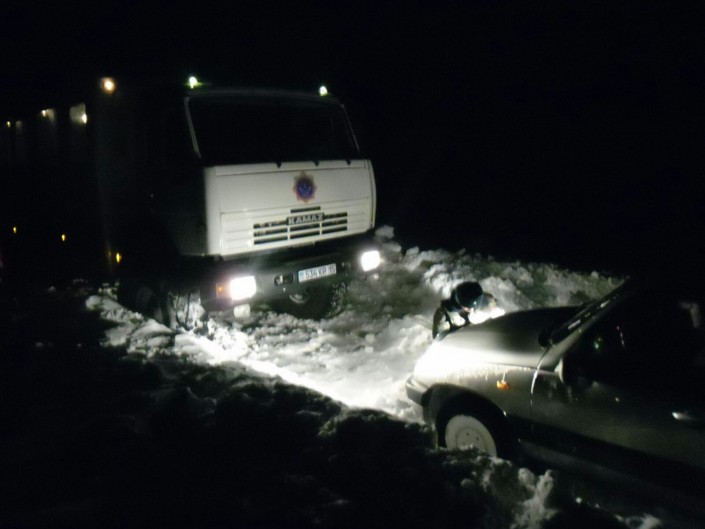 В Жаксынском районе Акмолинской области в снежном плену оказались 100 человек, из них четверо детей. В Актюбинской области на автодороге Бадамша - Хромтау из снежного заноса вызволены пять человек. В Костанайской области на трассе Мамлютка - Костанай на очищенный участок был отбуксирован автомобиль скорой помощи с роженицей, а на 40-м километре трассы Красная Пресня - Звериноголовское - автобус с 50 пассажирами, из них 32 ребенка, и 21 единица техники с 55 пассажирами.