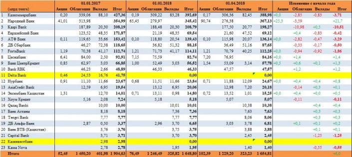 К крупным изменениям, произошедшим в портфеле пенсионных активов за март, относится  увеличение средств, инвестированных в ГЦБ РК, - плюс 86,47 миллиарда тенге, до 3 093,74 миллиарда тенге, что равно 38,8 процента совокупного портфеля. Средства в нотах НБ РК увеличились на 25,56 миллиарда тенге, в гособлигациях США - на 29,8 миллиарда тенге, в то время как из портфеля выбыл вклад в Bank of Montreal на 78,98 миллиарда тенге.