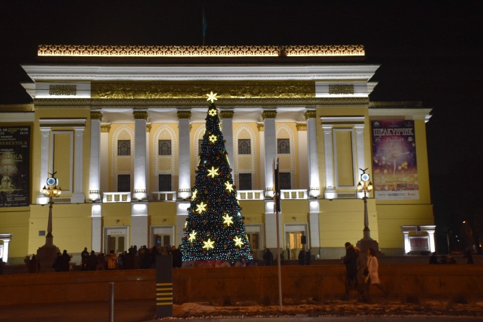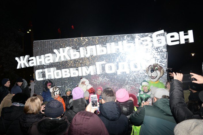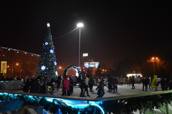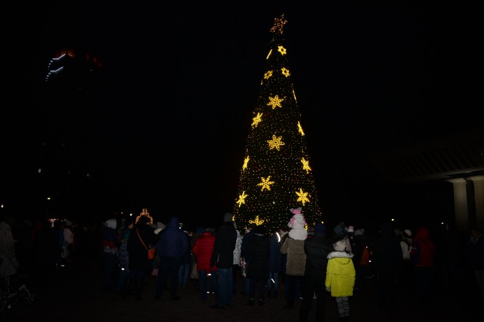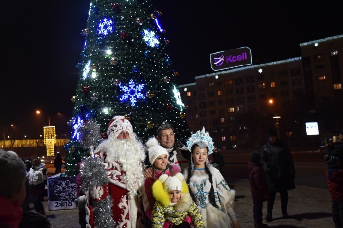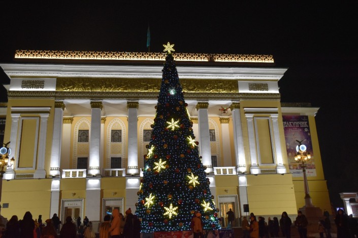 Главная елка города по традиции была установлена на площади Абая перед Дворцом Республики.