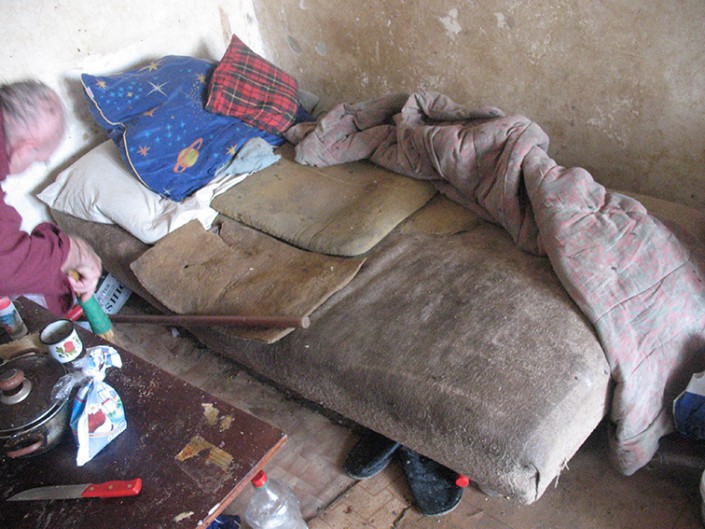 Наталья, дочь Клоповой, сама уже пенсионерка. Вот уже восемь лет она не ходит. Наталья получила вывих бедра, кроме того, она испытывает жуткие боли в правом колене. По квартире перемещается исключительно на "пятой точке", помогая себе руками. Возможно, лечение могло бы ей помочь, но Наталья отказывается от него.