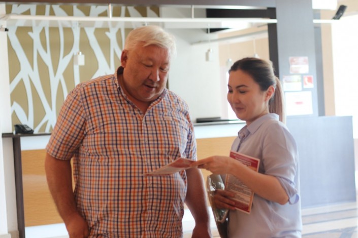 "Мы привыкли считать, что  здоровье человека зависит от системы здравоохранения, но на самом деле более чем на 50 процентов здоровье человека зависит от него самого. Конечно, понятия абсолютного здоровья не существует, ведь оно включает в себя, как здоровье тела, так и здоровье души. Например, в акции наряду с другими врачами нашей больницы сегодня принимает участие также доктор-психотерапевт,  почему бы не проверить свое психическое здоровье? Ведь для достижения здорового состояния и ощущения необходимо планирование и желание прожить долгую и счастливую жизнь. Потому даже если и нет серьезных заболеваний, но есть сомнения, что  нужно проверить тот или орган, нужно прийти и обследоваться у специалиста", - рассказывает доктор-нефролог Орынгуль Нарманова, которая сегодня с утра также на приеме консультирует посетителей больницы.