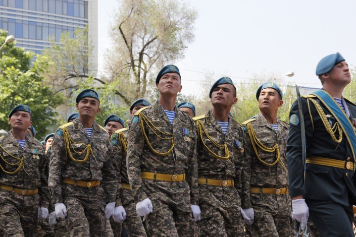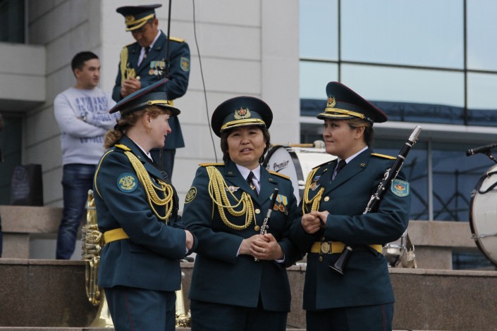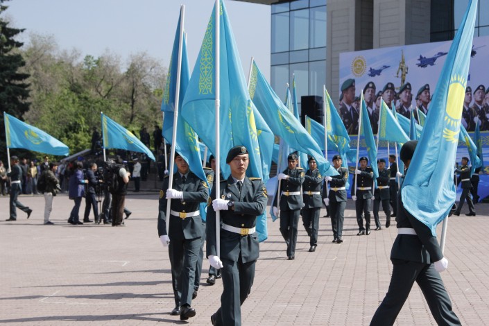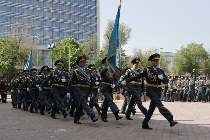 После на площади Абая прошли показательное выступление с оружием курсантов службы Государственной охраны и маршировка других военнослужащих. Всего в мероприятии приняли участия более 500 военнослужащих. Праздник завершился выступлением артистов. Организатором мероприятия выступил Департамент по делам обороны Алматы.