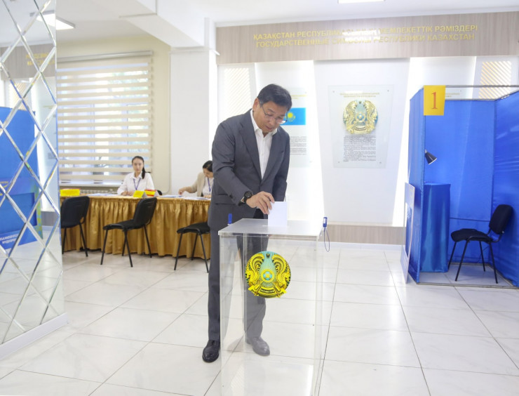 Одними из первых в 7 часов утра на избирательный участок пришли аким Алматы Ерболат Досаев вместе с супругой. Они проголосовали на избирательном участке № 358, расположенном в школе-лицее № 28 имени Маншук Маметовой.
