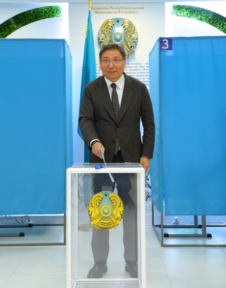 Аким Алматы Досаев вместе с супругой проголосовали на выборах