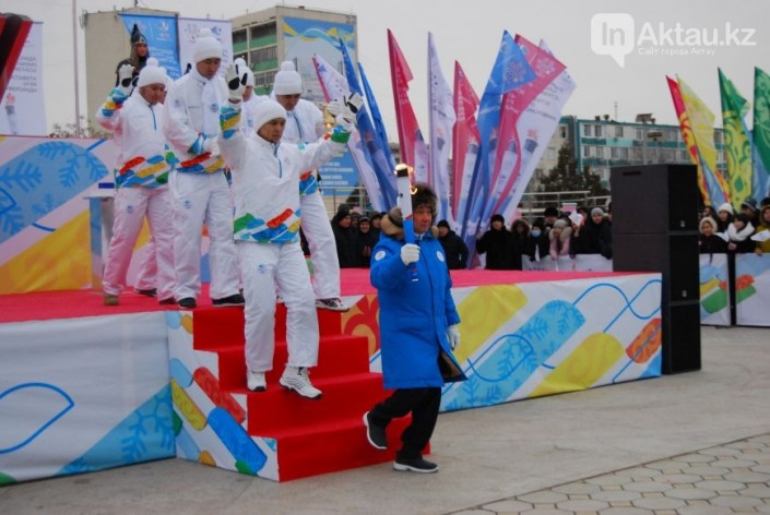 Аким Астаны Асет Исекешев окружил себя молодыми и энергичными, но высокий рост все равно выделял его на фоне участников эстафеты. Огонь Универсиды пылал вовсю, видимо, это стало причиной того, что глава второй самой холодной столицы мира решился проводить мероприятие на открытом воздухе без головного убора.