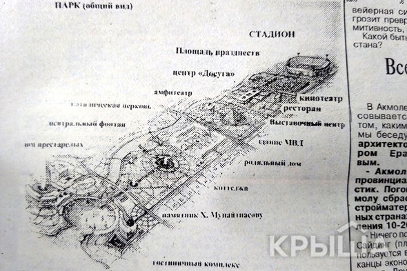 В этом же материале от 9 января 1997-го под заголовком "Какой быть столице?" в качестве иллюстрации - рисунок, напоминающий ось современного бульвара "Нуржол". Даже Пирамида есть.