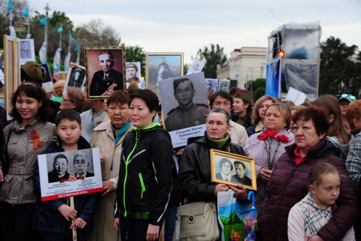 Алматинцы маршировали по улицам города с портретами ветеранов Фото Николай Колесников
