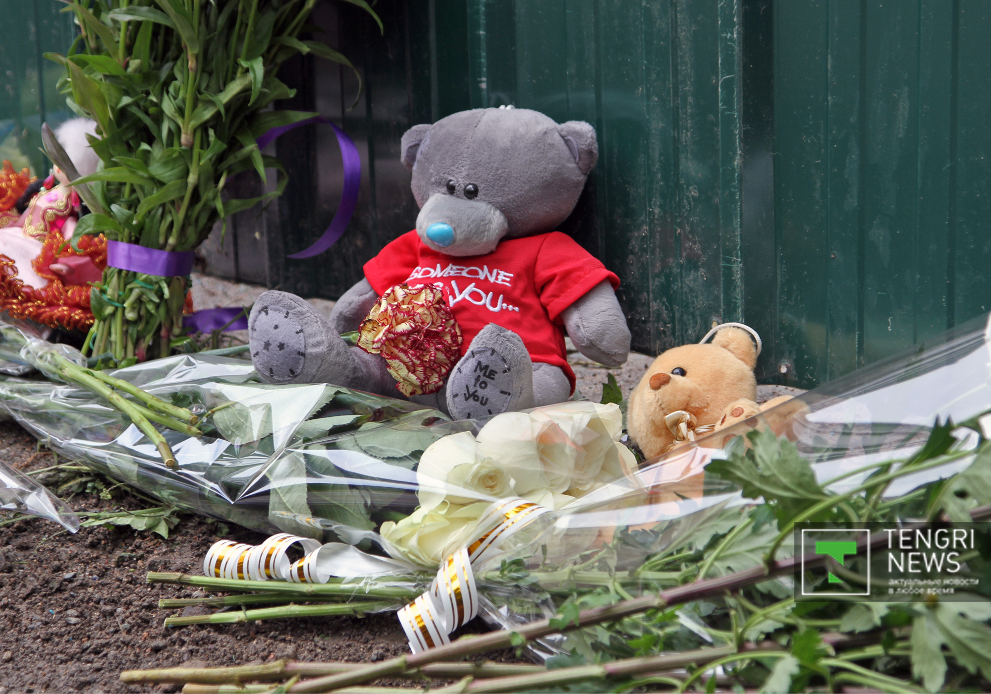 На место трагедии в детском саду №58 по улице Сулейменова в Алматы горожане несут цветы, передает корреспондент Tengrinews.kz.