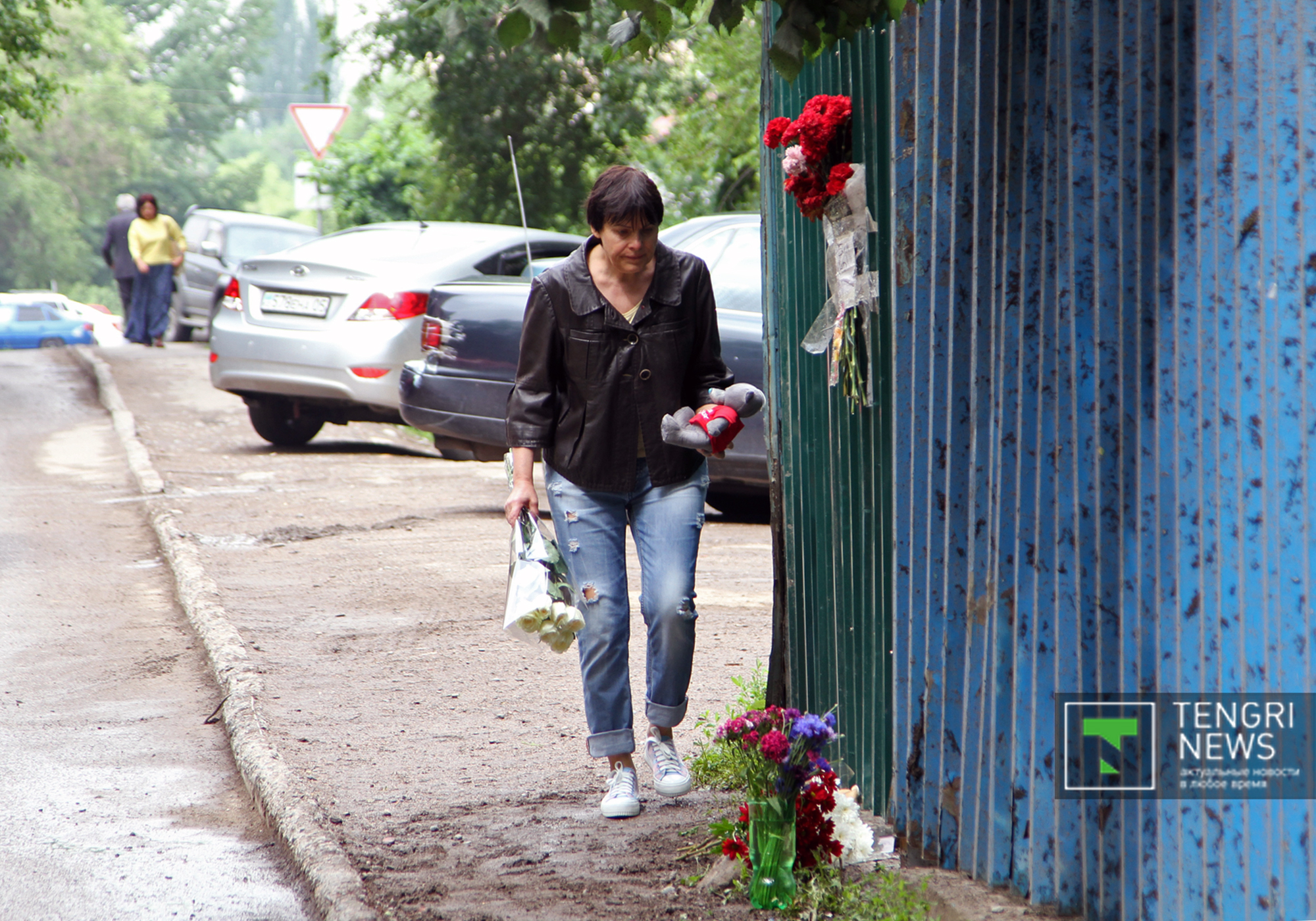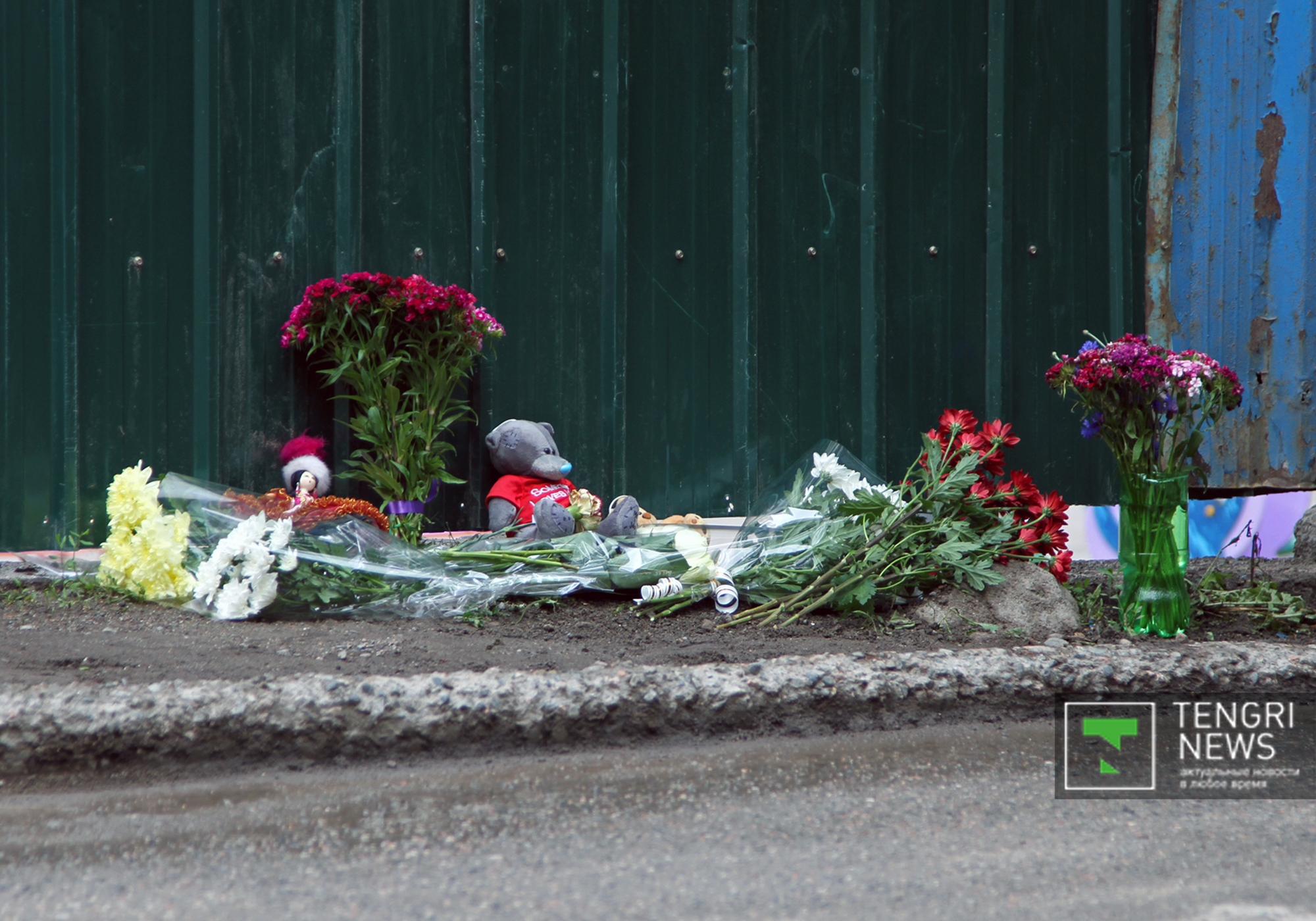 Алматинцы несут цветы к месту гибели девочки в детском саду