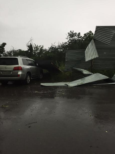 На парковке ЖК Apple Town, который находится на пресечении проспекта Аль-Фараби и улицы Аскарова, забор упал на автомобиль.