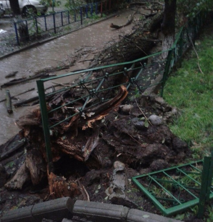 Так, например, из-за сильного урагана дерево упало в реку Большая Алматинка.