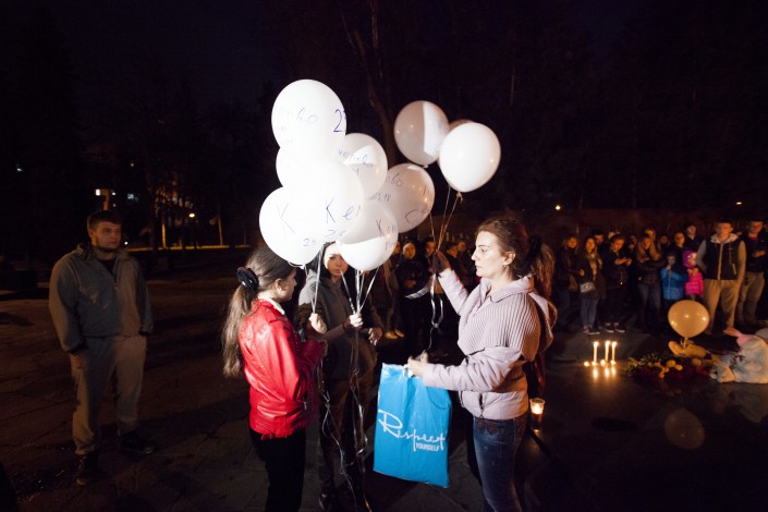 Горожане возложили цветы, принесли игрушки и запустили белые шары в парке 28 панфиловцев. В мероприятии приняли участие около 50 человек, в основном молодежь.