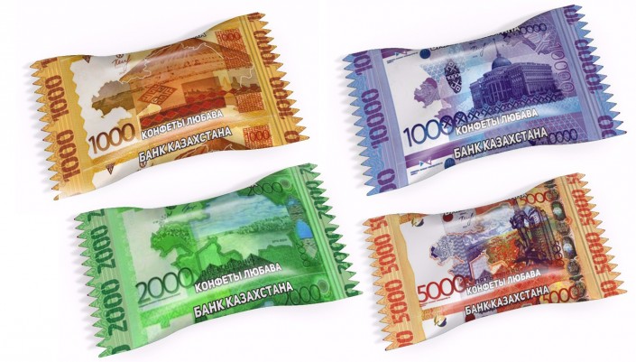 Кондитерские изделия с оберткой с изображением национальной валюты тенге производятся на заводе в России, передает корреспондент Tengrinews.kz. Конфеты уже несколько месяцев продаются в ряде городов Казахстана.