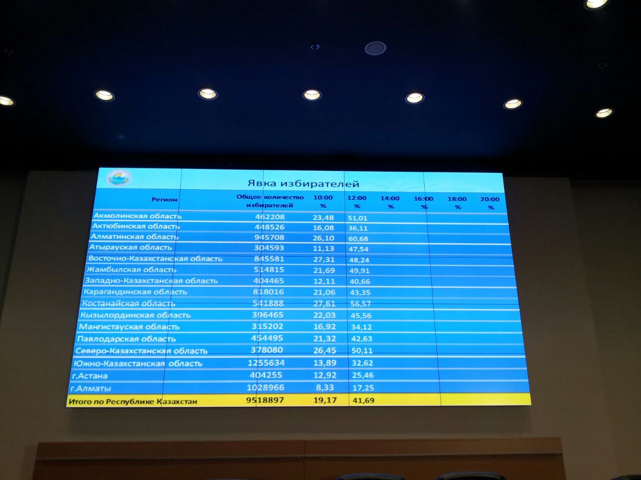 По состоянию на 12 часов по времени Астаны проголосовали 41,69 процента от общего количества избирателей.
