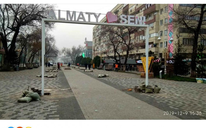 Возмутившие горожан инсталляции в виде арок "Алматы любит тебя" убрали с Арбата, передает Tengrinews.kz со ссылкой на представителей компании-подрядчика Adiant media.
