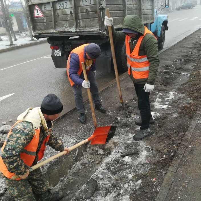 Там же опубликованы фотографии работ, проводящихся в Алатауском, Ауэзовском и Жетысуском районах.