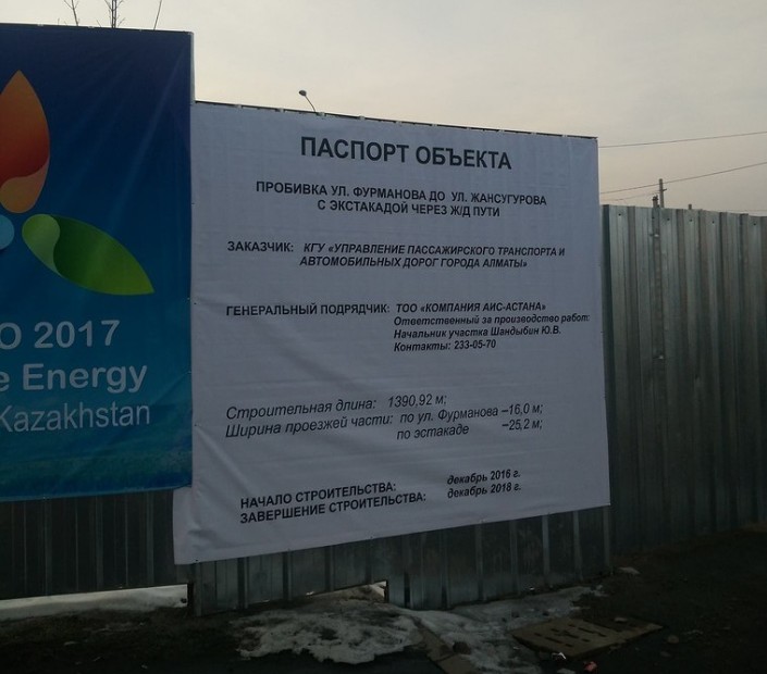 В сообщении указывается, что в связи с изъятием земельных участков для государственных нужд будут принудительно отчуждены земельные участки, расположенные вдоль улиц Фурманова и Жансугурова. Датой принудительного отчуждения определено 31 декабря 2017 года.