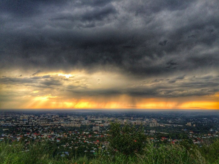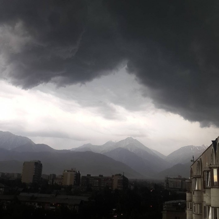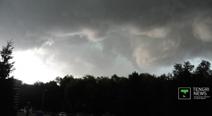 Около 18.00 Алматы накрыла тьма и начался ливень, который сопровождался сильным ветром, передает корреспондент Tengrinews.kz. Алматинцы делятся в соцсетях фотографиями непогоды. Отмечается также, что от сильного ветра падают деревья.