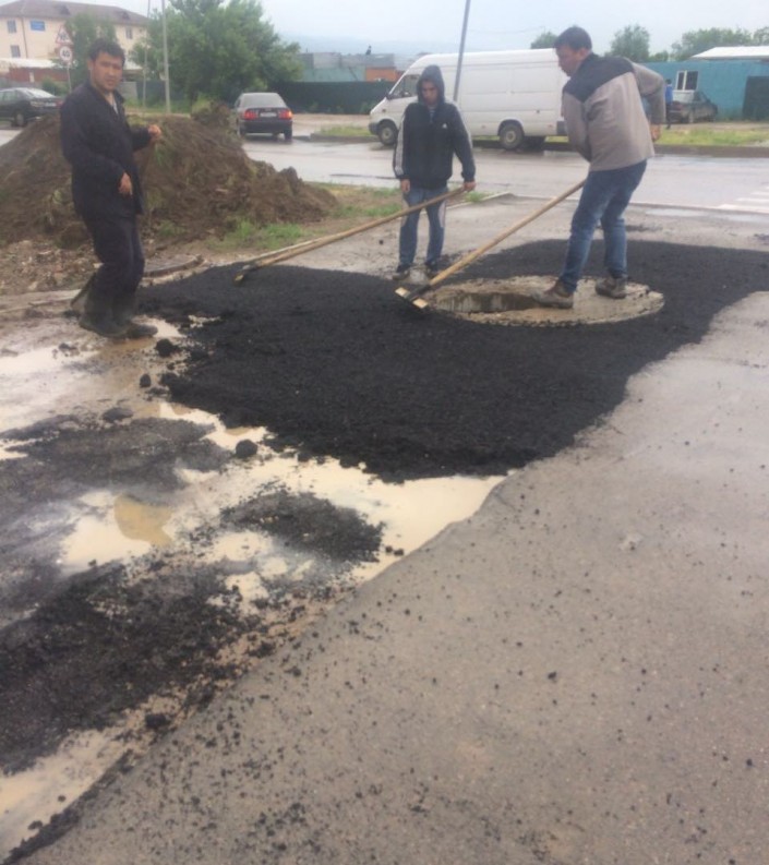 По словам очевидцев, днем 26 мая, когда по всему городу шел дождь, строители продолжали работу по укладке дорожного полотна возле дома № 33 в микрорайоне Акбулак. Местные жильцы задались вопросом, насколько качественно проделывается работа и есть ли гарантированный срок эксплуатации проложенного асфальта.