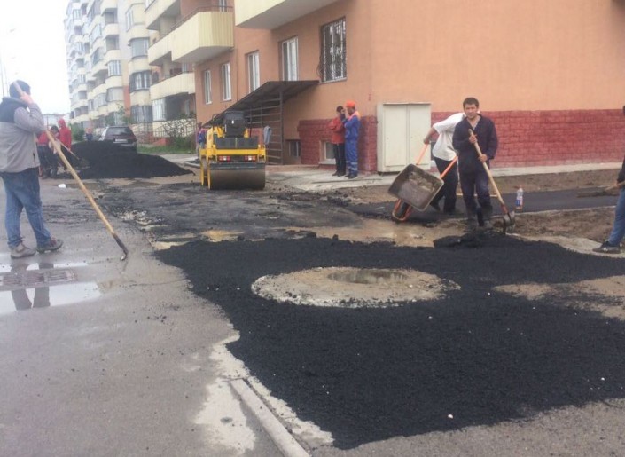 Жильцы не верят, что существует новая технология, которая позволяет прокладывать дорожное полотно во время осадков.