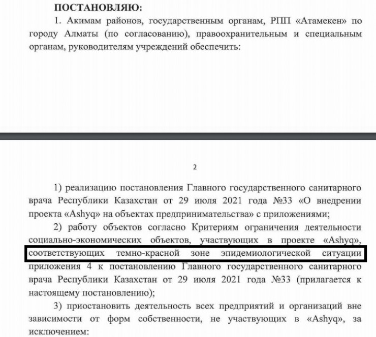 Днем ранее главный санитарный врач Казахстана Ерлан Киясов подписал постановление, в котором появилось определение "темно-красной" зоны.