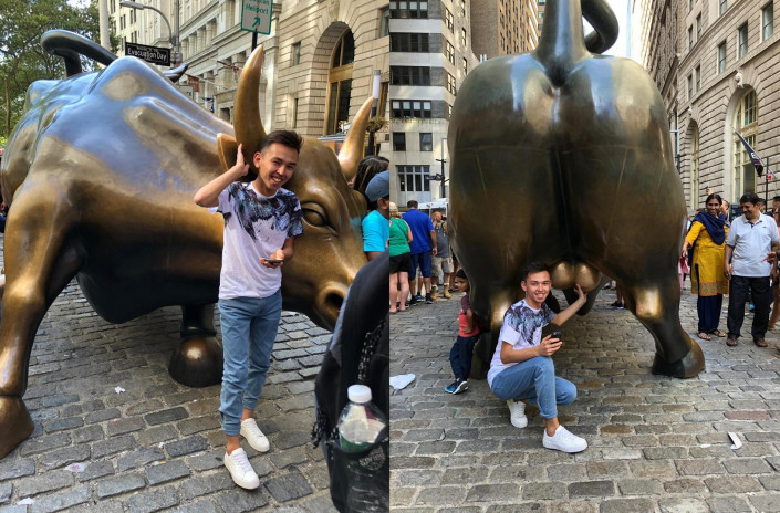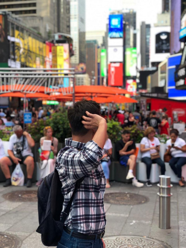 Дастан Барлыбай на Таймс-сквер в Нью-Йорке.