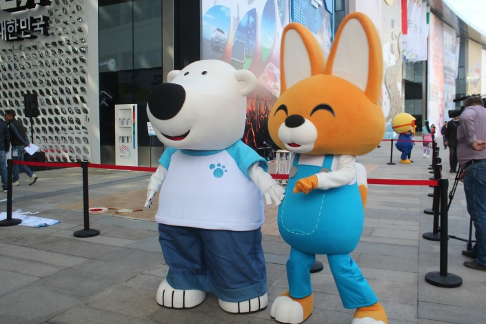 До презентации посетителей павильона Южной Кореи встречали герои популярного компьютерного анимационного сериала. И взрослые, и дети не могли удержаться от возможности сфотографироваться с Пороро и его друзьями.