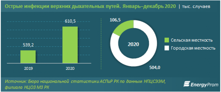 Также выросло число зарегистрированных случаев острой инфекции верхних дыхательных путей. Аналитики отмечают, что большая часть случаев приходится на жителей городов. Лишь 17,4 процента зафиксировано в сельской местности.