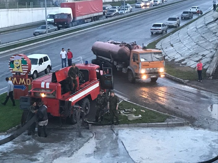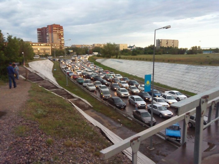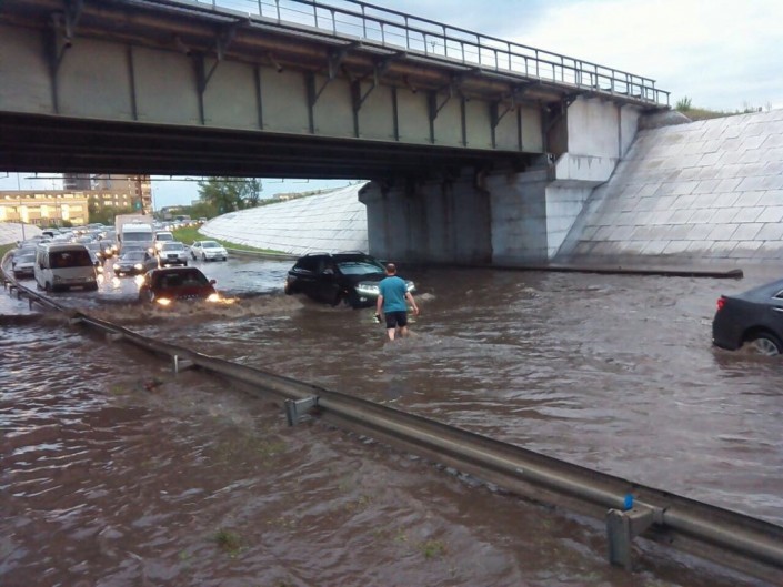 "Из-за скопившейся воды люди временно стали заложниками дорожной пробки по улице Селевина под железнодорожным мостом и по улице Глинки в сторону проспекта Ауэзова на кольцевой развязке. В настоящее время работа по откачке воды силами коммунальных служб и ЧС продолжается. Работают три автомобиля, одна мотопомпа, одна пожарная насосная станция и 18 человек", - сообщили в КЧС.
