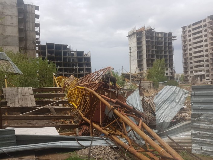 Кроме того, пострадало здание Дворца мира и согласия. Из-за сильного ветра повреждены витражные стекла. Также в Астане рухнул строительный кран.