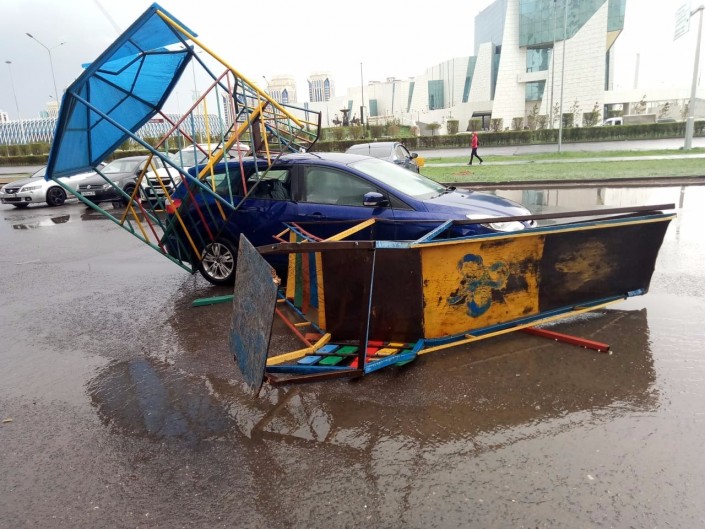"Сегодня в связи с резким ухудшением погодных условий, а именно кратковременного порыва ветра, дождя на телефонный номер "112" за последний час поступают звонки различного и экстренного характера об обрушении крана, плиток и так далее", - сообщили в ДЧС Астаны.