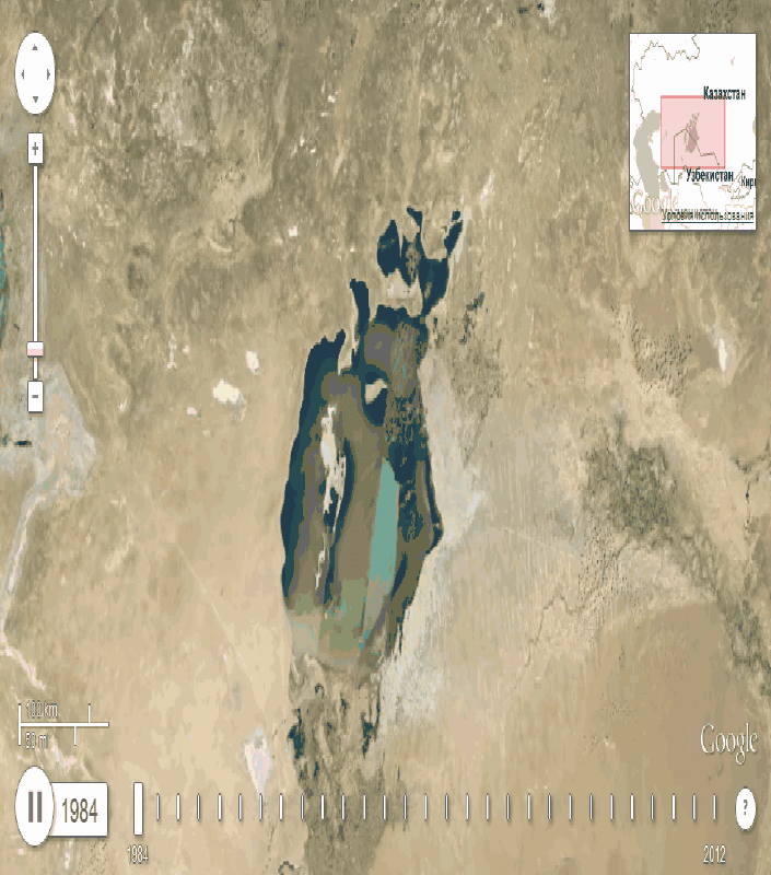 Наглядно демонстрируют картину высыхания Аральского моря снимки из космоса.