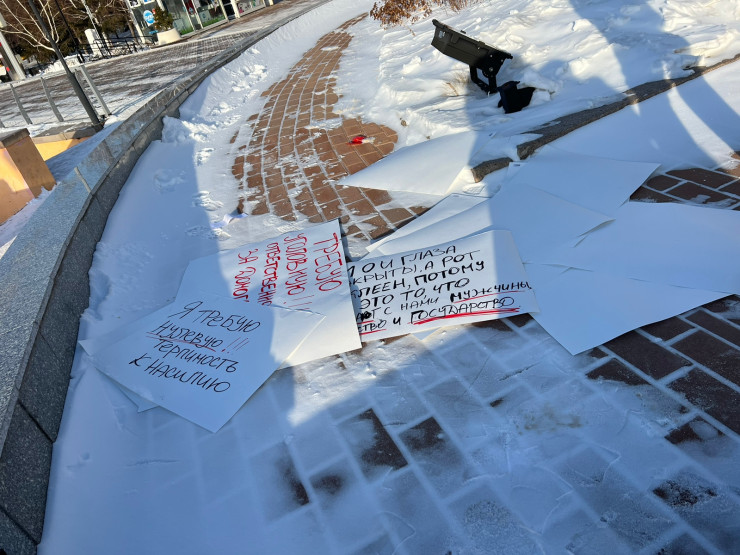 "Я требую уголовной ответственности за домогательства. Абсолютно каждая женщина Казахстана сталкивалась с домогательствами, и почему-то для нашего государства этого все еще недостаточно, чтобы вменить уголовную ответственность насильникам. Мы не понимаем, почему государству настолько все равно на женщин и детей Казахстана.