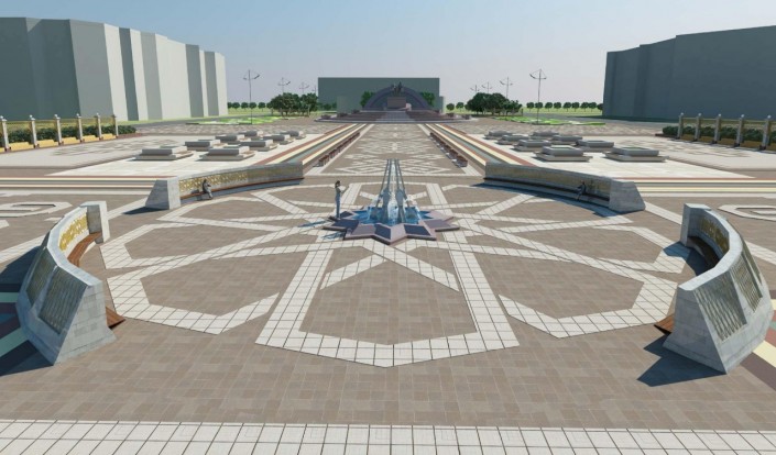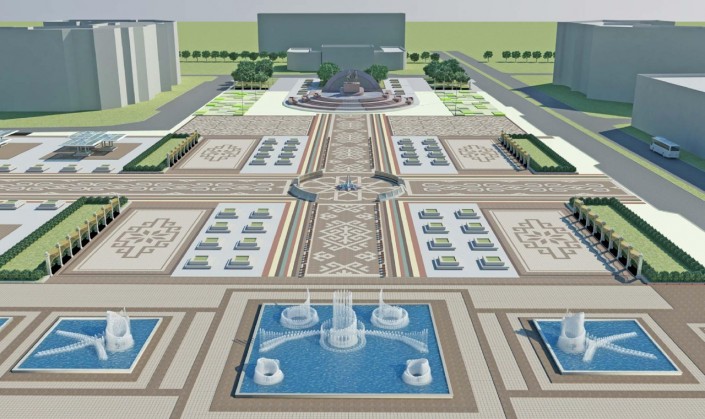 Согласно проектно-сметной документации, на обозначенной территории установят две масштабные архитектурные композиции, большие и малые фонтаны, бассейны, а также перголы со скамейками. Планируется, что главным украшением площади станет архитектурная композиция в виде мраморной домбры с бассейном со встроенным пенным фонтаном.